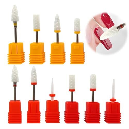 10 pcs Nail Drill Bits, Ceramic Acrylic Nail File Set, Electric Nail File Accessories for Manicure & Pedicure