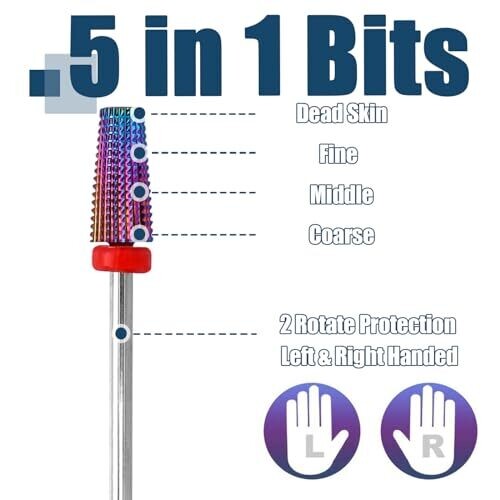 Bestgle 2 pcs Nail Drill Bits, 5 In 1 Tapered Nail Drill Bit, 3/32 In Shank