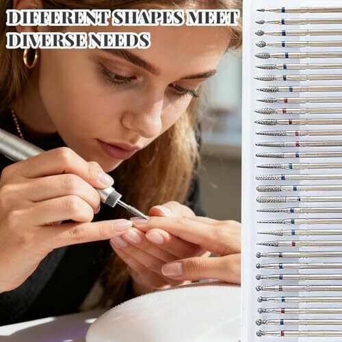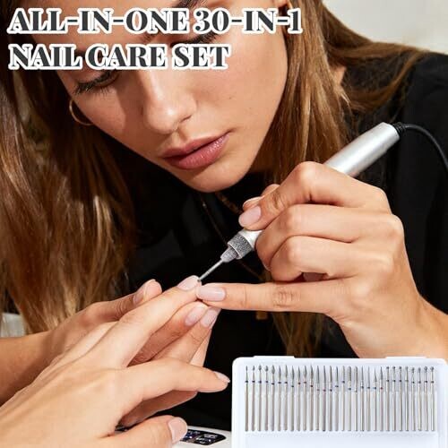 - All-in-One 30-piece tungsten carbide nail drill bit set for complete nail care at home or in the salon.