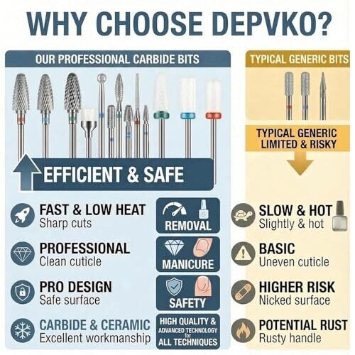 - Includes a mix of tungsten carbide, ceramic E-file, and diamond bits for versatile nail care.