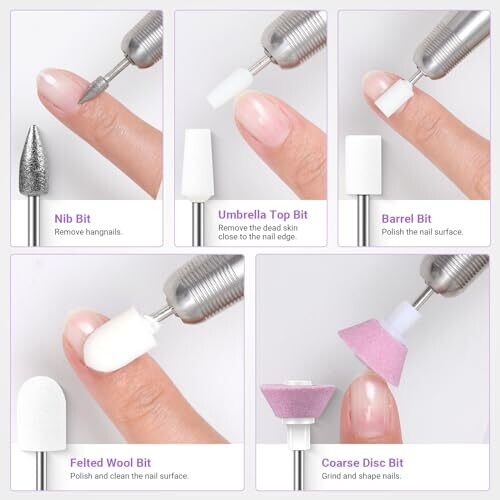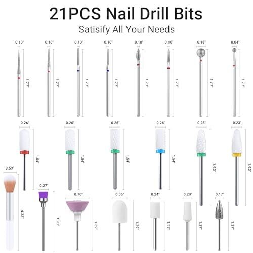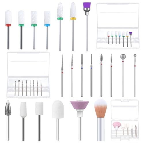 - Includes a versatile assortment of bits crafted for precise shaping, filing, and finishing of acrylic, gel, and dip nails.