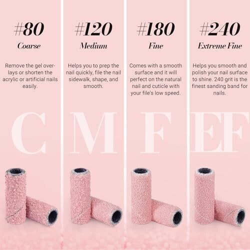 - Versatile grit range supports seamless transitions from shaping and shortening to polishing for a polished, long-lasting result.