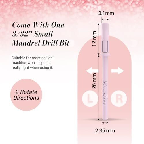 - Compact 3.1 mm mandrel fits most small drill machines for effortless control and clean work on gel, acrylic, and natural nails.