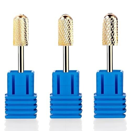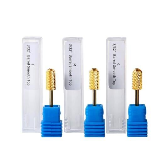 • Safety Nail Drill Bits - 3/32'' Smooth Top Barrel Carbide Bits, Gold, 3pcs (Fine, Medium, Coarse)