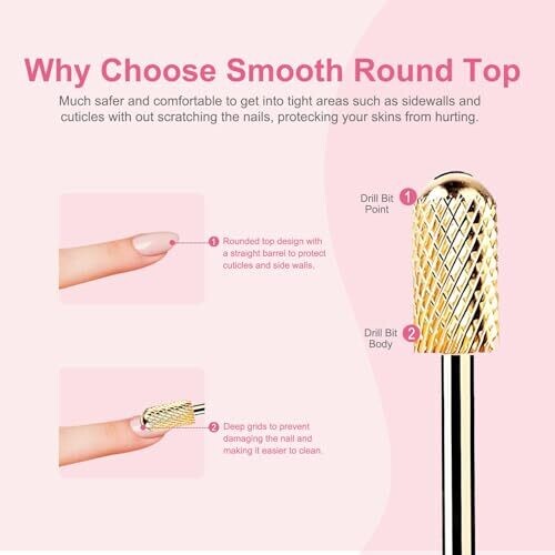 MelodySusie Safety Nail Drill Bits, 3/32'' Large Barrel Carbide Bits, Rose Gold, Extra Coarse