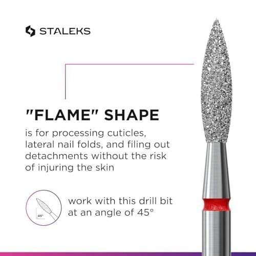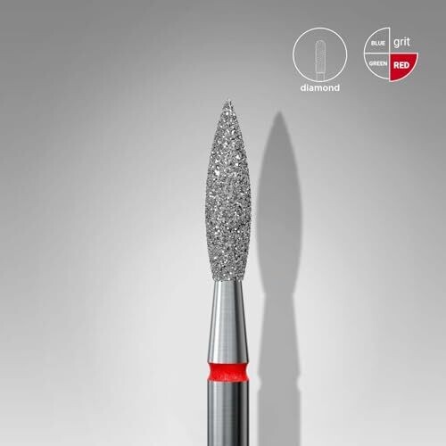 Professional grade diamond bit for precise salon nail care, ideal for apparative manicures and pedicures. Durable coating ensures long life under heavy use, suitable for wet or dry operation, and compatible with standard cutters (2.35 mm). Distinctive flame ring aids quick identification.