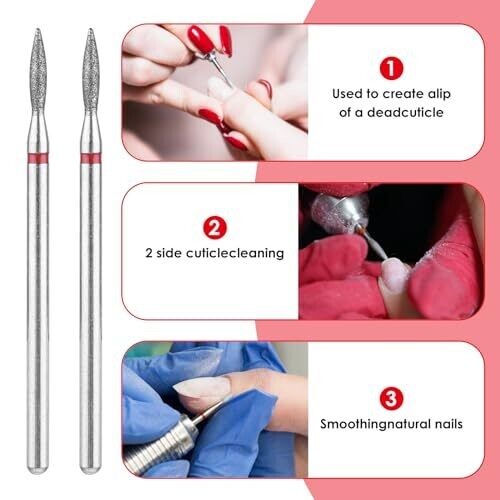 • Diamond-coated bits for durable performance and smooth operation across natural and artificial nails.