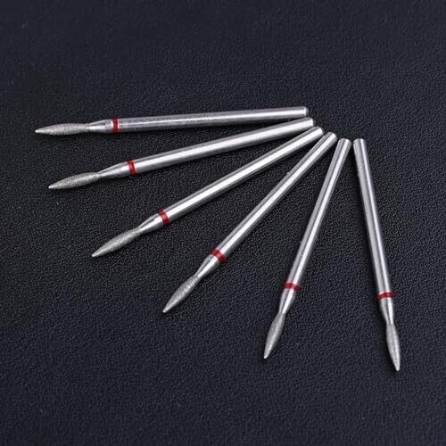 • Professional 6-piece cuticle drill bit set designed for precise cuticle removal and nail bed cleaning.