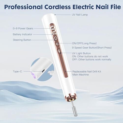 Electric Nail Drill 35000Rpm - Cordless Nail File with 9 Speeds for Gel Nails