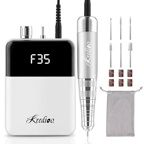 • Kredioo Nail Drill 35000 Rpm Electric Nail File Rechargeable E File Kit with Bag
