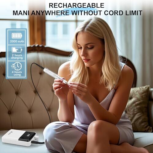 • Portable and rechargeable nail drill kit designed for on-the-go manicures at home or in the salon.