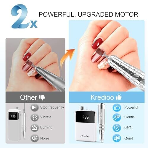 Kredioo Nail Drill 35000 Rpm Electric Nail File Rechargeable E File Kit with Bag