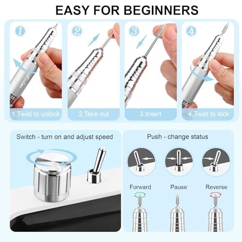 • Versatile attachments with included drill bits and sanding bands for various manicure and pedicure tasks.