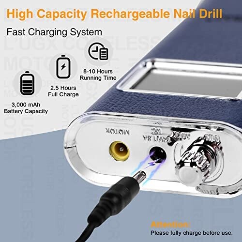 - Cordless, portable nail drill designed for professional salons and home use, delivering true on-the-go convenience.