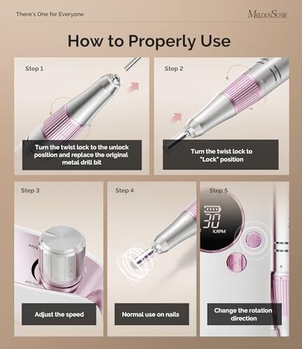 • MelodySusie entry-level clip-on e-file with a pastel and colorful design, ideal for training, nail art practice, and home use.