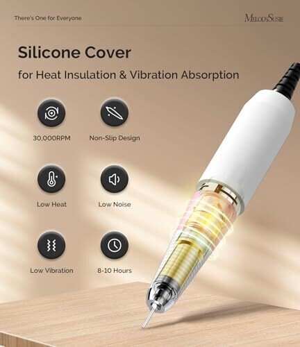 MelodySusie Entry-Level Clip-On Rechargeable Nail Drill with Anti-Slip Handle Sc300I 30000rpm E-File
