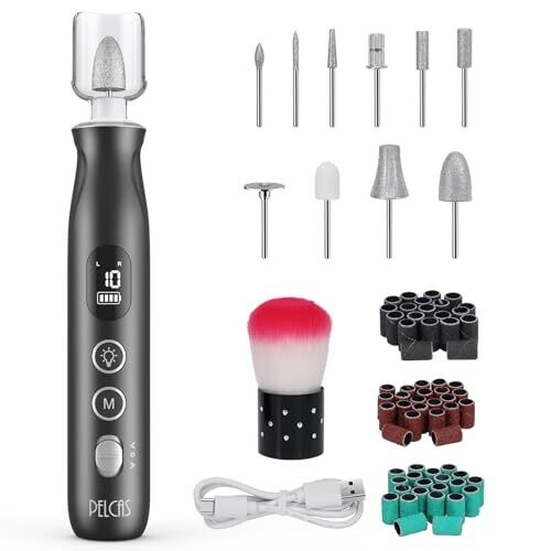 Pelcas Nail Grinder, 10 Speeds Drill with Led Light, Manicure Kit, Black