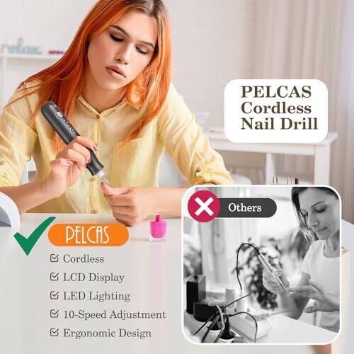 - Ergonomic pen-style grip with 360-degree LED lighting for clear visibility during nail work.