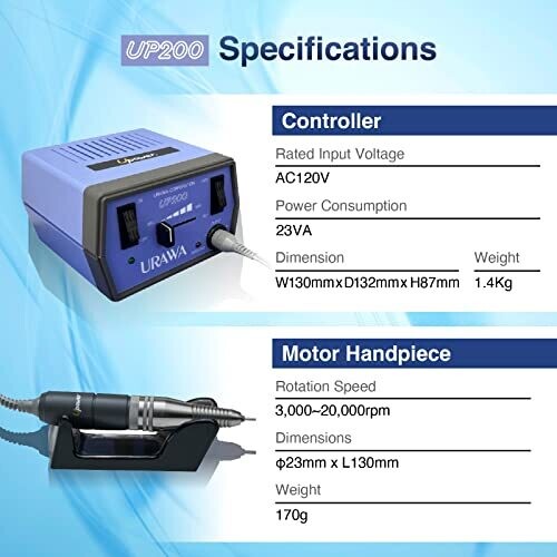 • UP200 Professional Nail Drill Machine from URAWA Corp, designed for both salon and home use with professional performance.