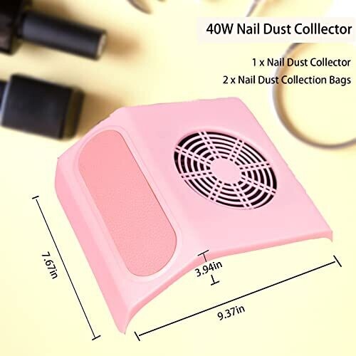 Aremod 40W Nail Fan Dust Collector Portable Vacuum for Salon with 2 Bags (Pink)
