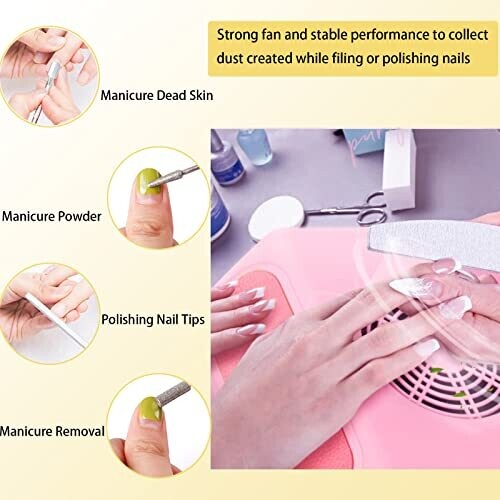 - Powerful 40W suction quickly captures dust and dander generated during filing and polishing, ensuring a cleaner table and safer breathing space.