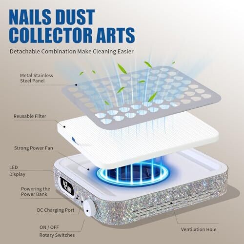 - Elevate your manicure game with a chic, rhinestone-accent nail dust collector that blends style and performance.