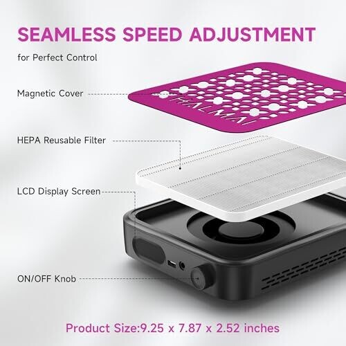 Halmai Nail Dust Collector - 800Pa Suction & 50K RPM Brushless Motor, HEPA Filter