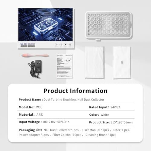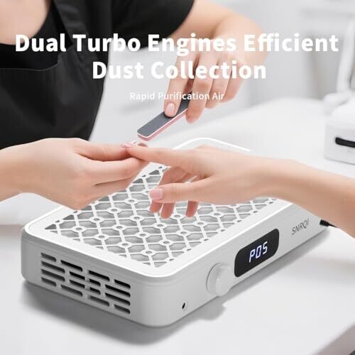 Experience salon-grade power with 1600PA dual-turbo suction and twin 3500 RPM motors for fast, clean nail dust removal. Features a 5-speed smart dial, LED display, 10 filter papers, reusable filter pad, and a slim, portable design for mobile or home use.