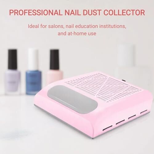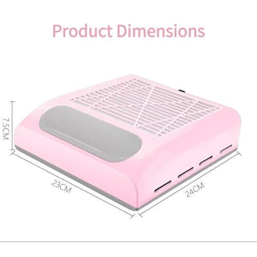 Elevate your manicure with a stylish pink desktop dust collector. Its 80W motor provides strong suction for filing and acrylic work, while a reusable filter reduces waste. Quiet operation and ergonomic hand pillow ensure comfortable, professional results at home or salon.