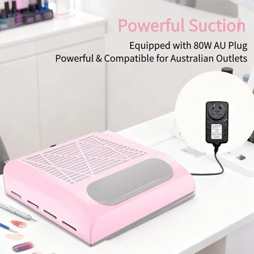 • Nail Dust Collector 80W AU Plug, Vacuum Reusable Filter - Manicure Tool (Pink)