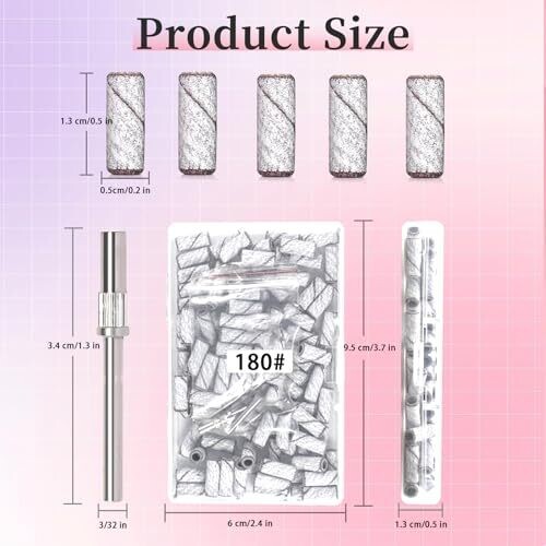 Achieve precise salon-quality nails with 180 grit mini sanding bands designed for detailed shaping and smooth finishes. Includes 100 bands and 2 silver mandrel bits in a portable case for easy travel and versatile use on gel, acrylic, and natural nails.