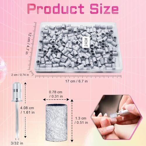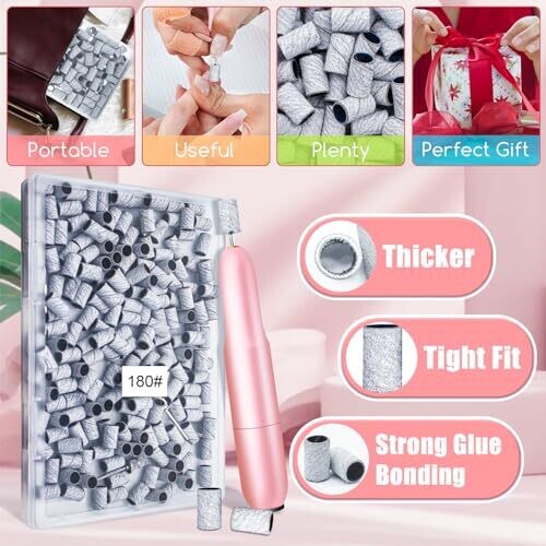 Ribhnhxhi Sanding Bands for Nail Drill, 100pcs, 180 Grit, Pink, with 3/32 Inch Drill Bits