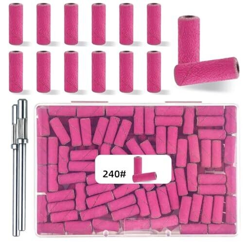Luzcauwy 102 pcs Mini Sanding Bands 240 Grit for Nail Drill Bits 3mm Mandrel Set