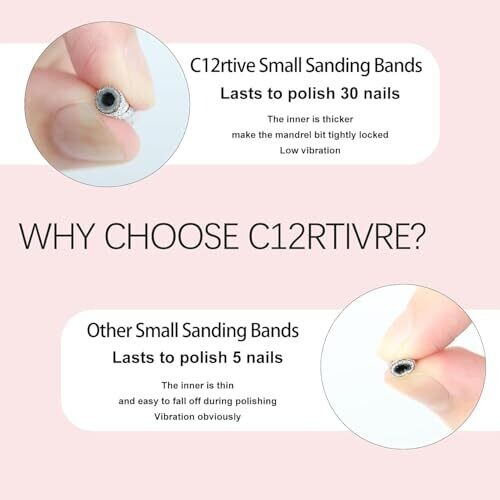 Includes 100 sanding bands and 2 mandrel bits in a compact case for easy storage. The 3mm mini size allows precise detailing for nails, gel, and callus removal. Easy clip-on installation; portable for home use or professional salons.