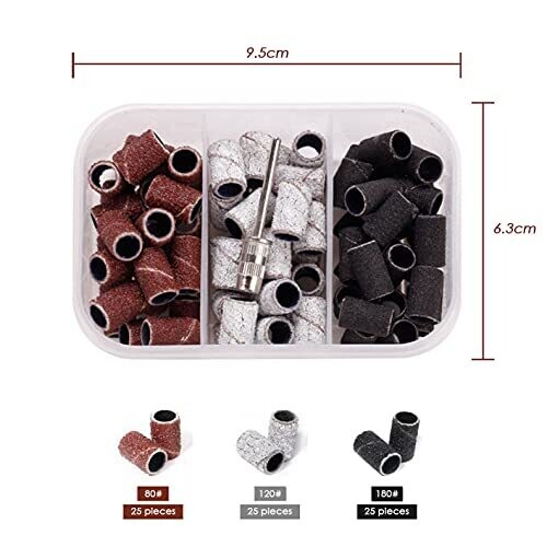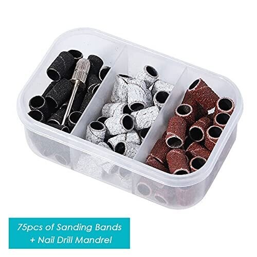 Beauties Factory 75 Sanding Bands with Storage Case and Mandrel Bit, Brown 80#, White 120#, Black 180#