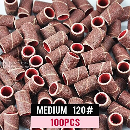 Includes 100 sanding bands for nail drills in coarse 80#, medium 120#, and fine 180# grit. Brown color helps identification. Compatible with standard 3/32 inch shank drills, suitable for salons, spas, and home nail art for shaping and polishing.