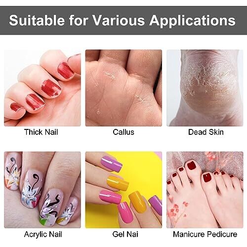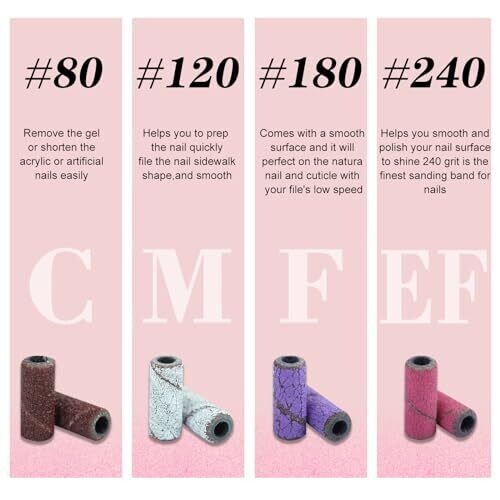 • Multi-grit options (80#, 120#, 180#, 240#) for filing, shaping, and polishing acrylics, gels, and natural nails.
