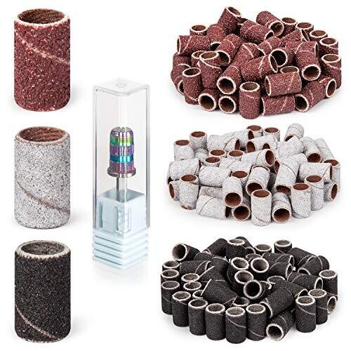 • Lavinda Sanding Bands Nail Drill Bits 300pcs Grits 80 150 240 Zebra Mandrel 3/32