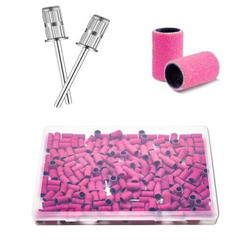 Ombrisa Sanding Bands for Nail Drill 100pcs, 180# Grit, Pink, Includes 2 pcs 3/32” Bits