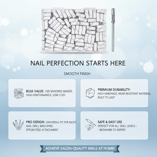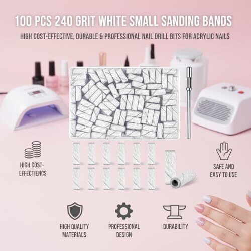 • Premium 240 grit white sanding bands designed for precise shaping and refining of nails with a gentle touch.