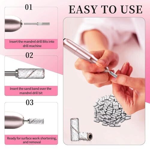 Povtor 240 Grit Sanding Bands for Nail Drill, 2 Mandrel Bits for Natural Nails