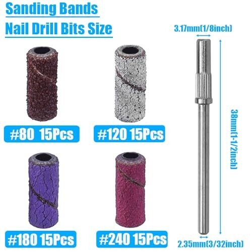 • Yakamoz 60pcs Sanding Bands Nail Drill Bits Set #80#120#180#240 Mandrel