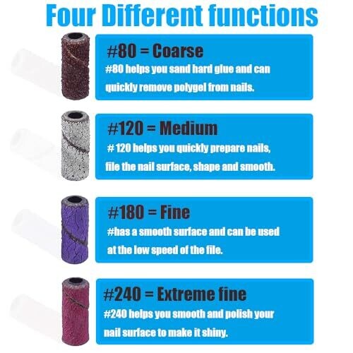 Yakamoz 250pcs Sanding Bands for Drill Nail, Colors #80#120#180#240 3 Mandrel Bits