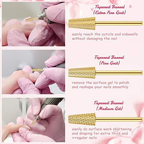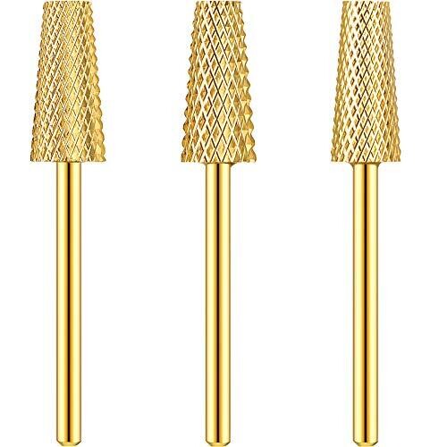 3 Pieces Tapered Barrel Carbide Nail Drill Bit, 3 Sizes for Acrylic File, Gel Manicure Pedicure (Xf, F, M, Gold)