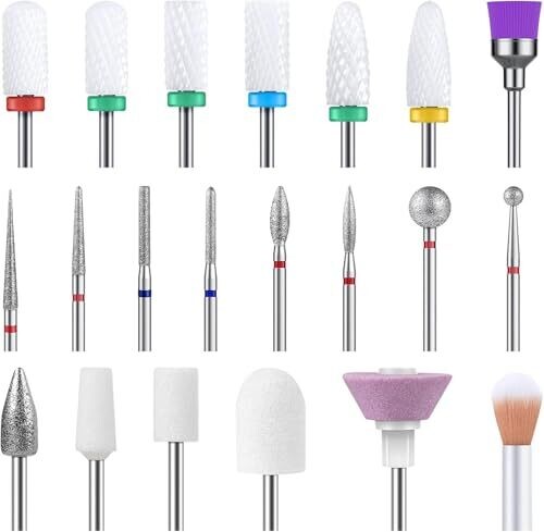 • Ceramic Diamond Carbide Kit for Acrylic Gel Nail Art, Nail Drill Bit Set, 21pcs