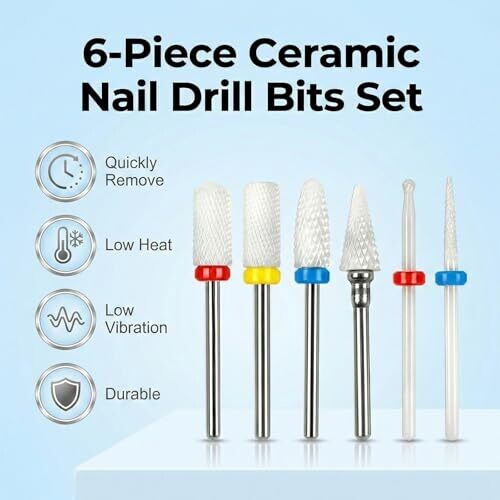• Elevate your nail service with a professional 6-piece ceramic bit set designed for fast acrylic and gel polish removal and precise cuticle care.