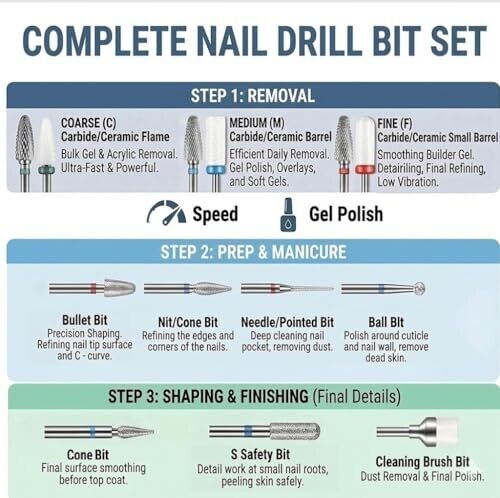 - All-in-one 13-piece nail drill bit set designed to deliver salon-grade results at home.