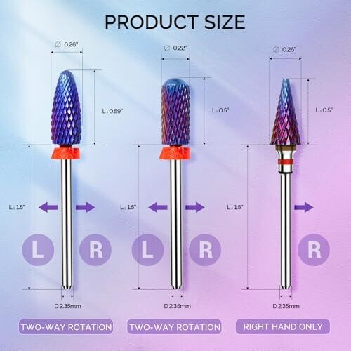 • Universal 3/32" (2.35 mm) shank fits most professional electric nail drills; stylish purple finish adds a pop of color to your toolkit.