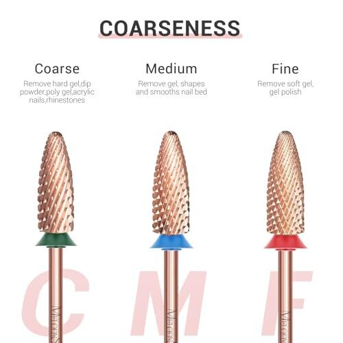 • MelodySusie Long Flame Nail Drill Bits, 3/32'' Carbide, Rose Gold, Bit-X Coarse