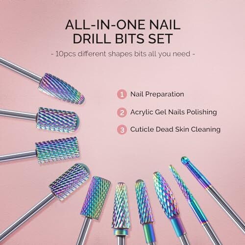 • MelodySusie Nail Drill Bits Set delivers a colorful, 10-piece tungsten carbide kit designed for precise manicure and pedicure tasks.